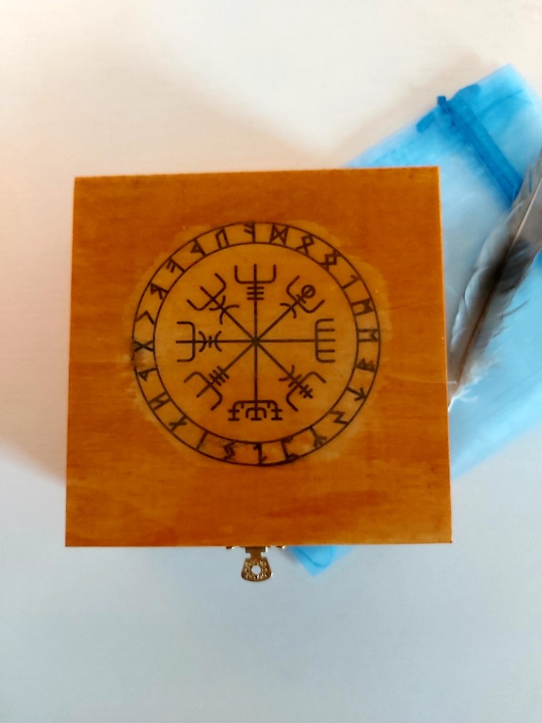 Questo cofanetto con simbolo di protezione narrano dipinto a mano può contenere le Rune