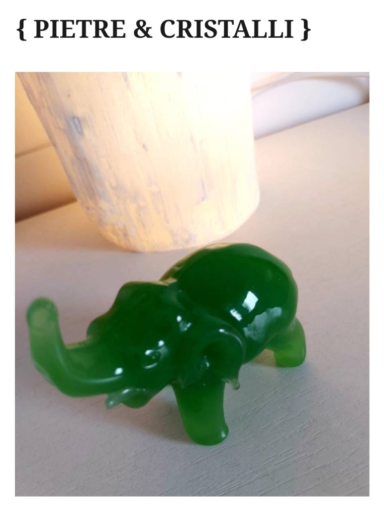 Scolpito in una pietra verde semi-preziosa, l’elefante di giada è considerato un simbolo di buona fortuna che possiede molte energie positive. Usato come talismano, l’elefante di giada simboleggia la potenza energetica, l’amore e la fortuna. La giada verde è anche stata usata per secoli come strumento di guarigione, se ne trovano tracce già in epoca Neolitica, nel 10.000 a.C. € 15