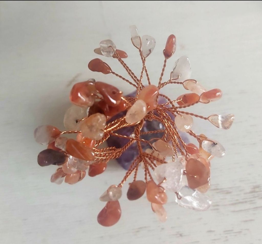Piccolo dono per abbellire ed energizzare la tua casa. Alberello in cristalli. Da tenere all’entrata di casa, oppure sul comodino o in uno studio ect….. questo è di corniola con base in ametista €12
