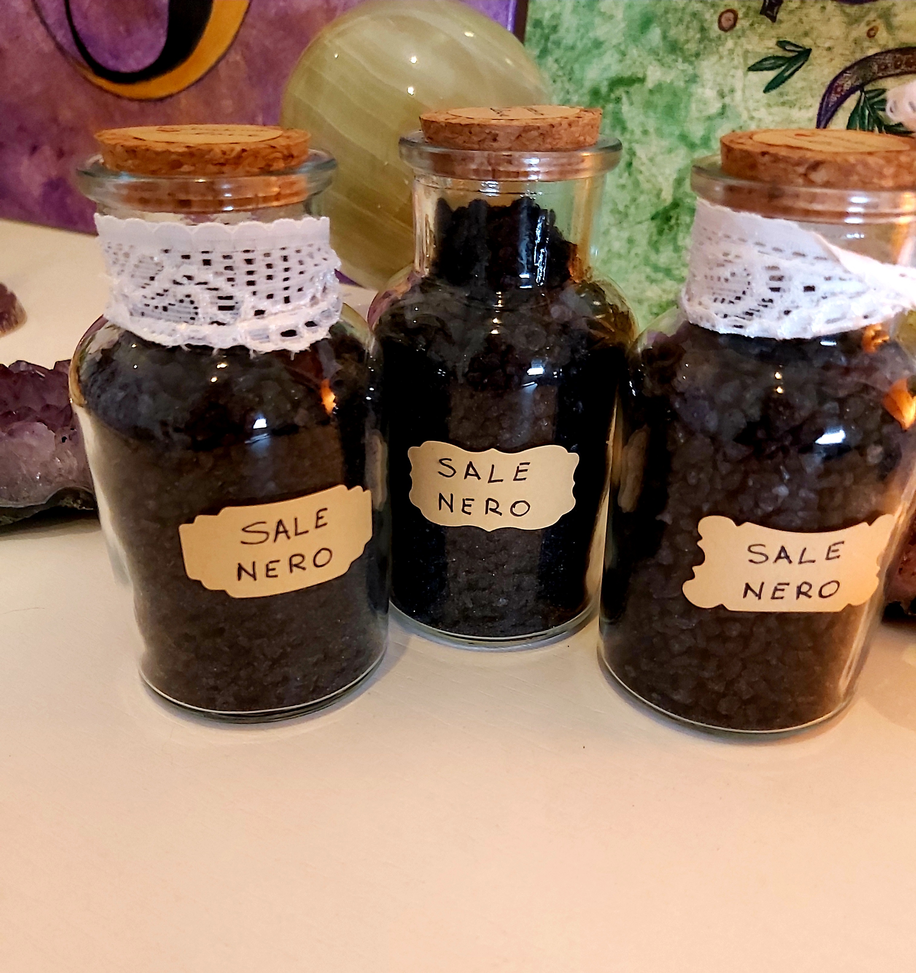 Il sale nero delle streghe si utilizza nei rituali di luna nuova. Ottimo per purificare I cristalli. Allontana il malocchio. Dona protezione. 1€ 13 2 € 20