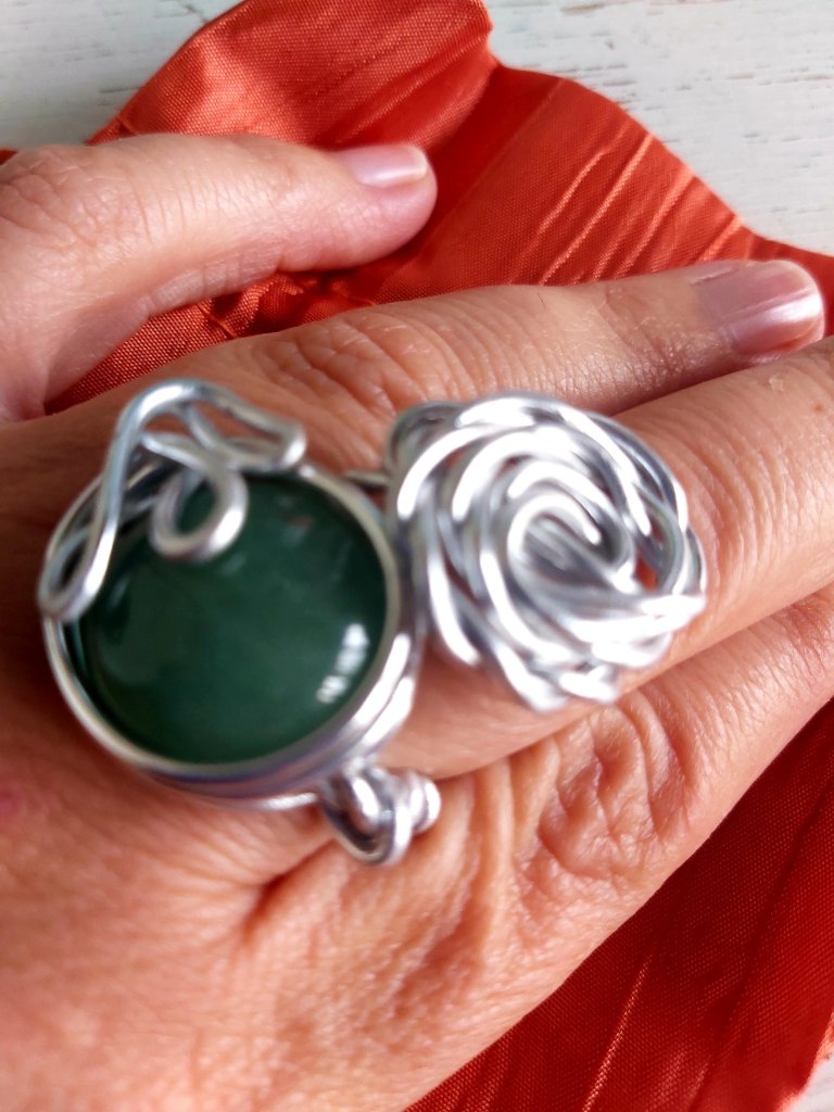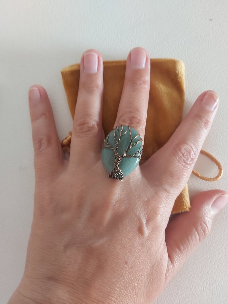 Anello con avventurina verde e albero della vita. Esprime dolcezza, ti aiuta a comprendere le esperienze vissute e a sviluppare un atteggiamento emotivo positivo. Ha un azione calmante e apporta chiarezza mentale ect…