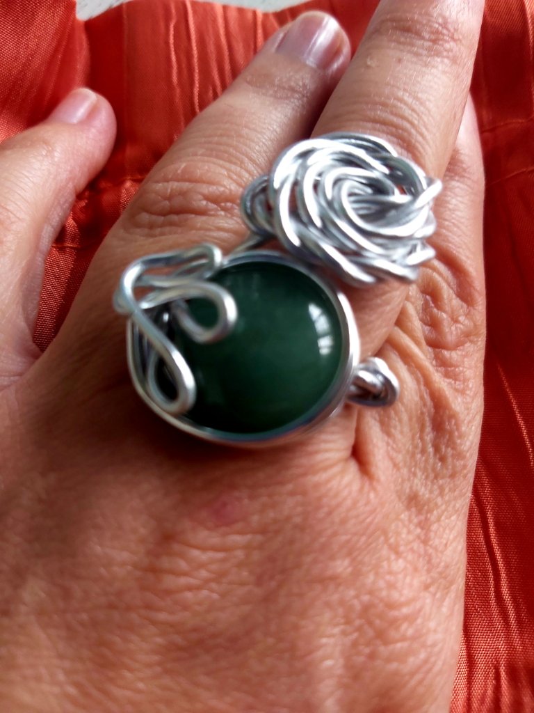 Anello stile etrusco con avventurina verde.