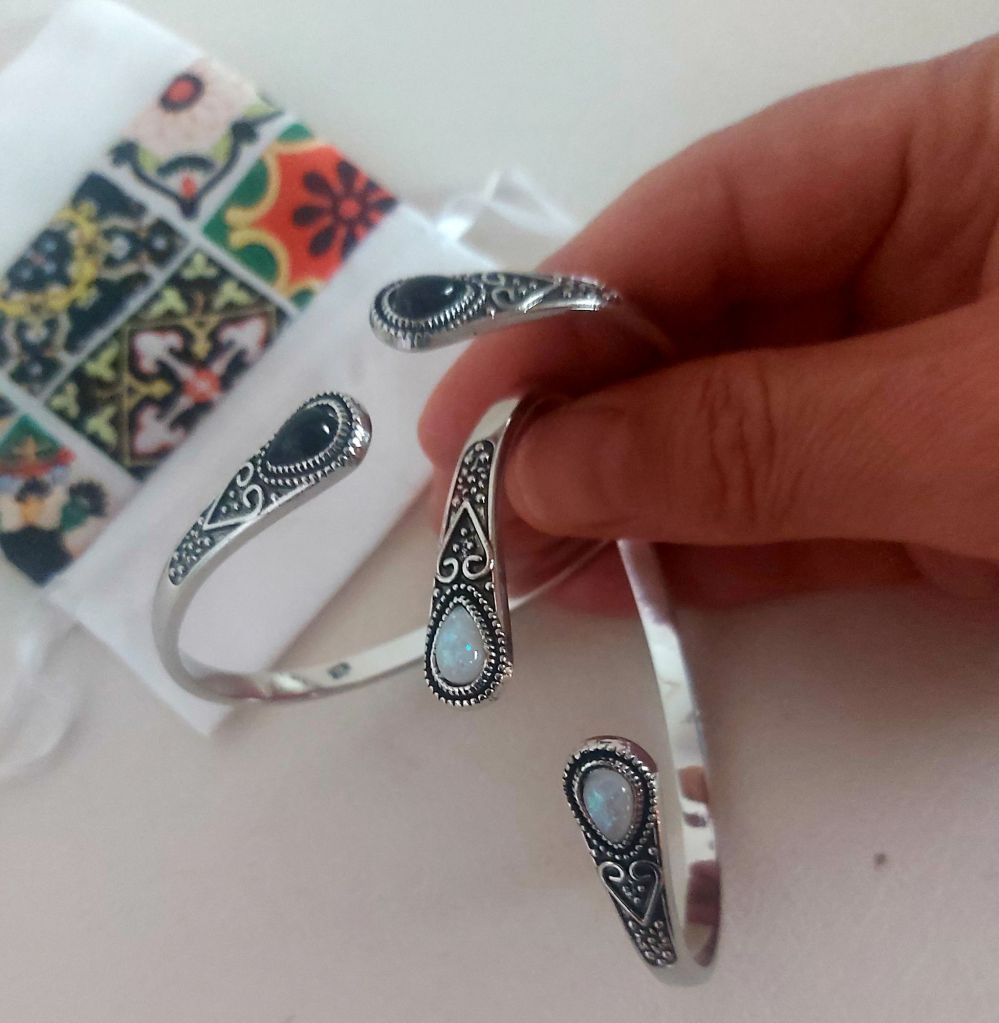 #bracciale #etnico #pietradiluna #ossidiananera #cristalloterapia #braccialesenzachiu