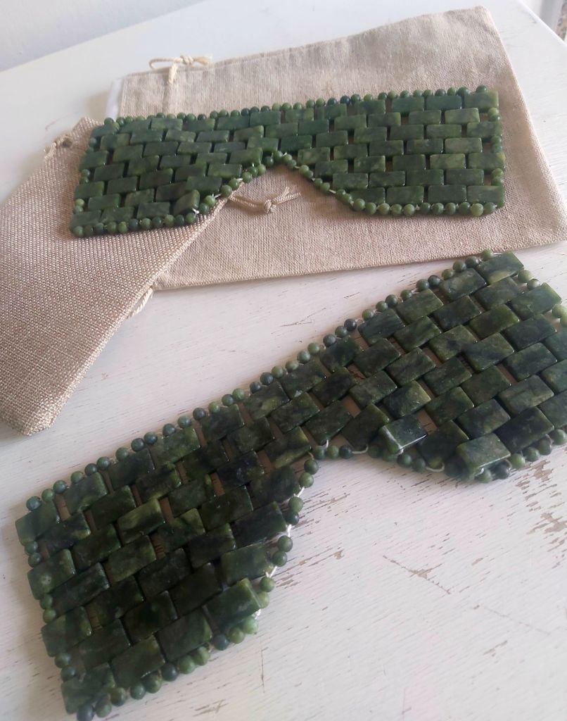 Questa maschera per occhi in pura Giada, allevia l’affaticamento degli occhi, riduce le occhiaie e l’edema, è antirughe. Rilassa i muscoli del viso adattandosi perfettamente agli occhi, dona un immediato effetto di sollievo su mal di testa ed emicrania. Maschera per gli occhi di giada: La maschera per gli occhi di giada può promuovere il metabolismo cellulare, aiutare a ridurre le rughe e la cura della pelle rossa, la pelle sembra più lucida, più elastica.