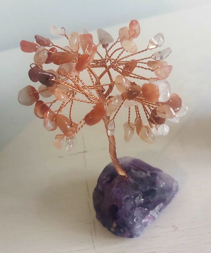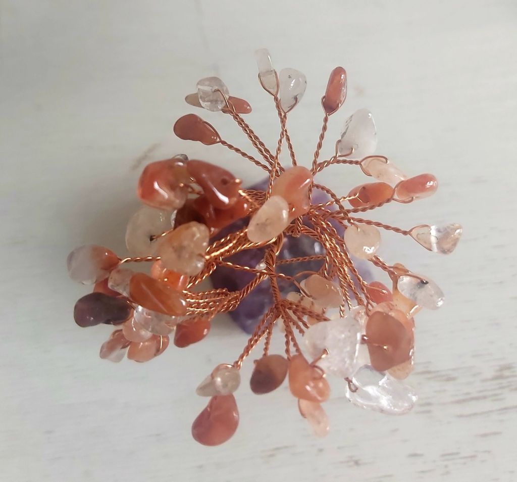 Piccolo dono per abbellire ed energizzare la tua casa. Alberello in cristalli. Da tenere all’entrata di casa, oppure sul comodino o in uno studio ect….. questo è di corniola con base in ametista €12